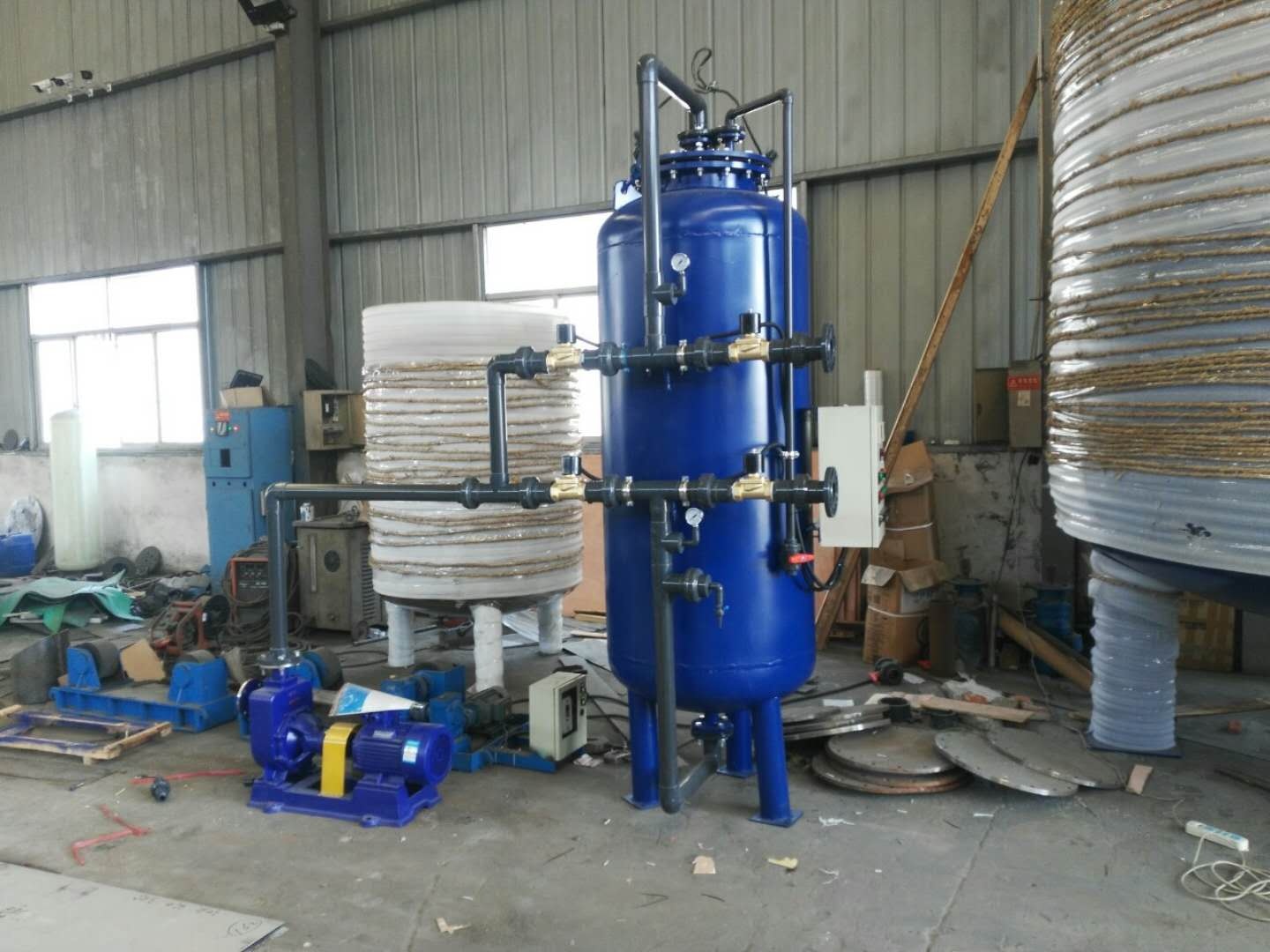 在以前過濾器運行中,也會出現由于水質沒有沉淀好,導致出水水質比較差,我們創新的采用,將水打入到過濾器,然后在過濾器沉淀1個小時候,因為過濾器有石英砂濾料,效果很好,出水清澈,有點像斜板沉淀池效果,石英砂就像斜板,增加沉淀效果。